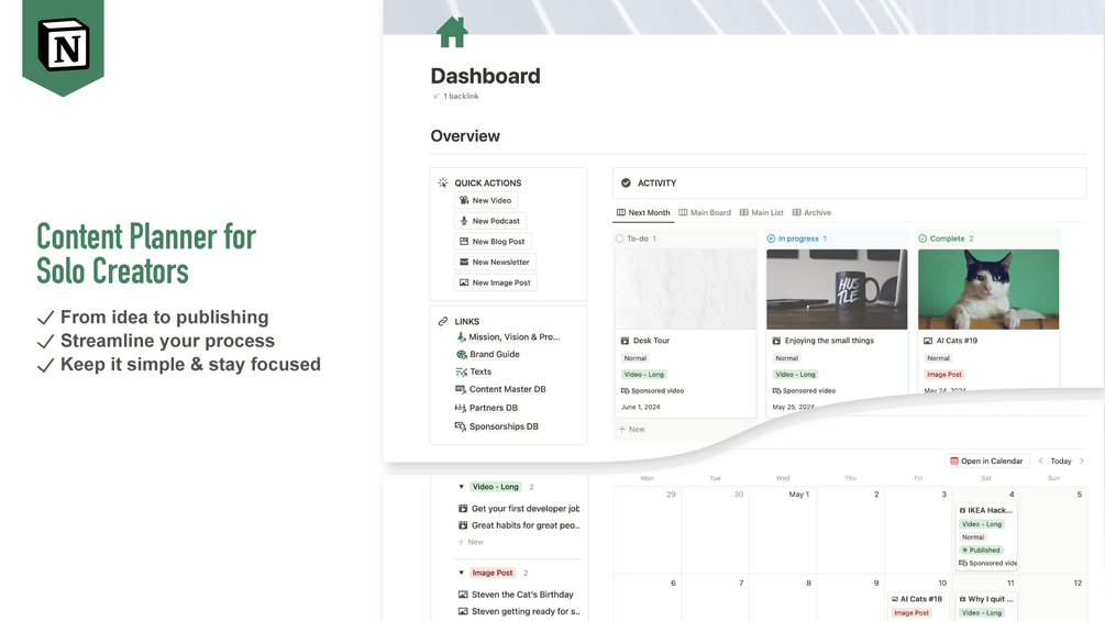 Content Planner Notion Template for Solo Creators - Streamline your Process, Organize your Workflow