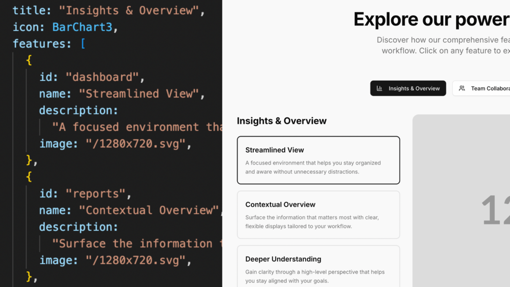 Almost all components in the template are configurable using simple json objects. Just fill in the structure you want for the page as well as the configuration for each component and you are ready to go!