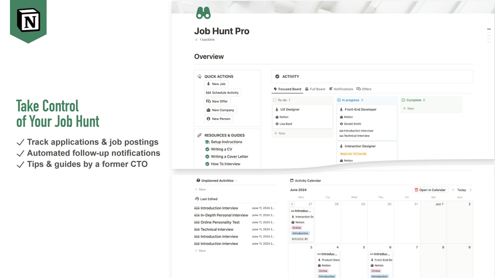 Job Hunt Pro, Notion Template - Organize Your Job Search, Stand Out and Get Hired
